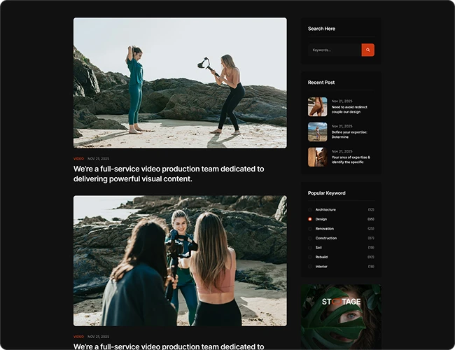 Import a complete property website with one click, or combine 1000+ section blocks to craft a unique showcase for your photography & videography portfolio.